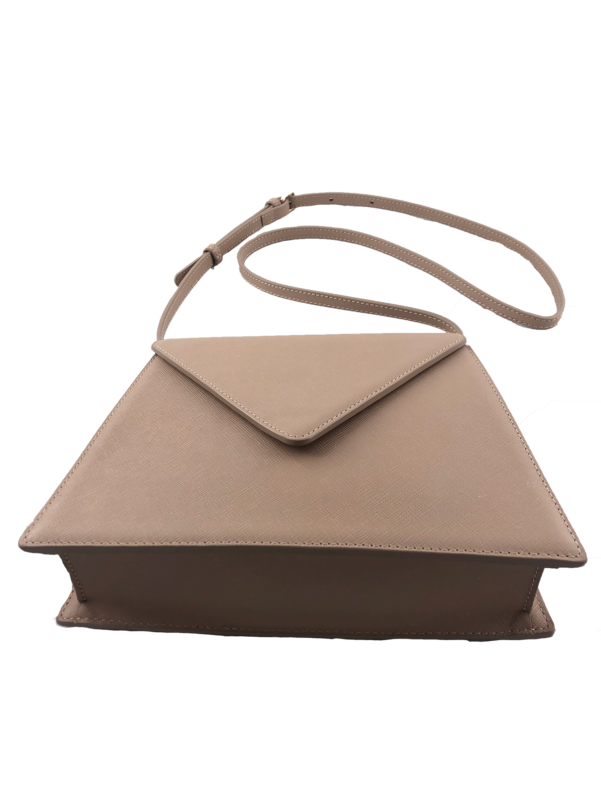Designed with an envelope style flap and constructed of an elegant saffiano leather exterior and smooth, soft microfiber interior. Wear as a crossbody or as a shoulder piece with the adjustable leather shoulder strap. This medium-sized bag is your new go to accessory for everyday wear or fancy dress.