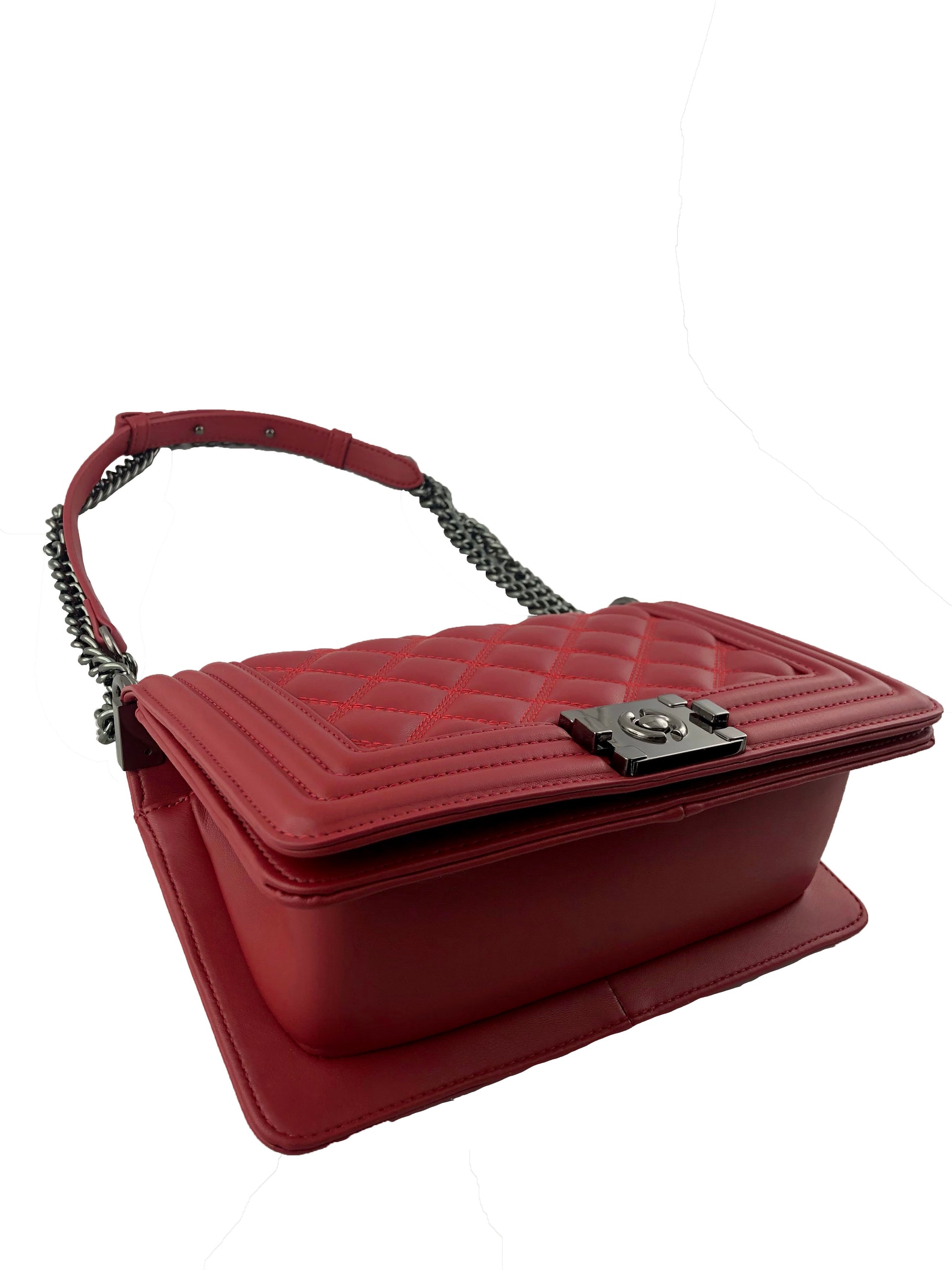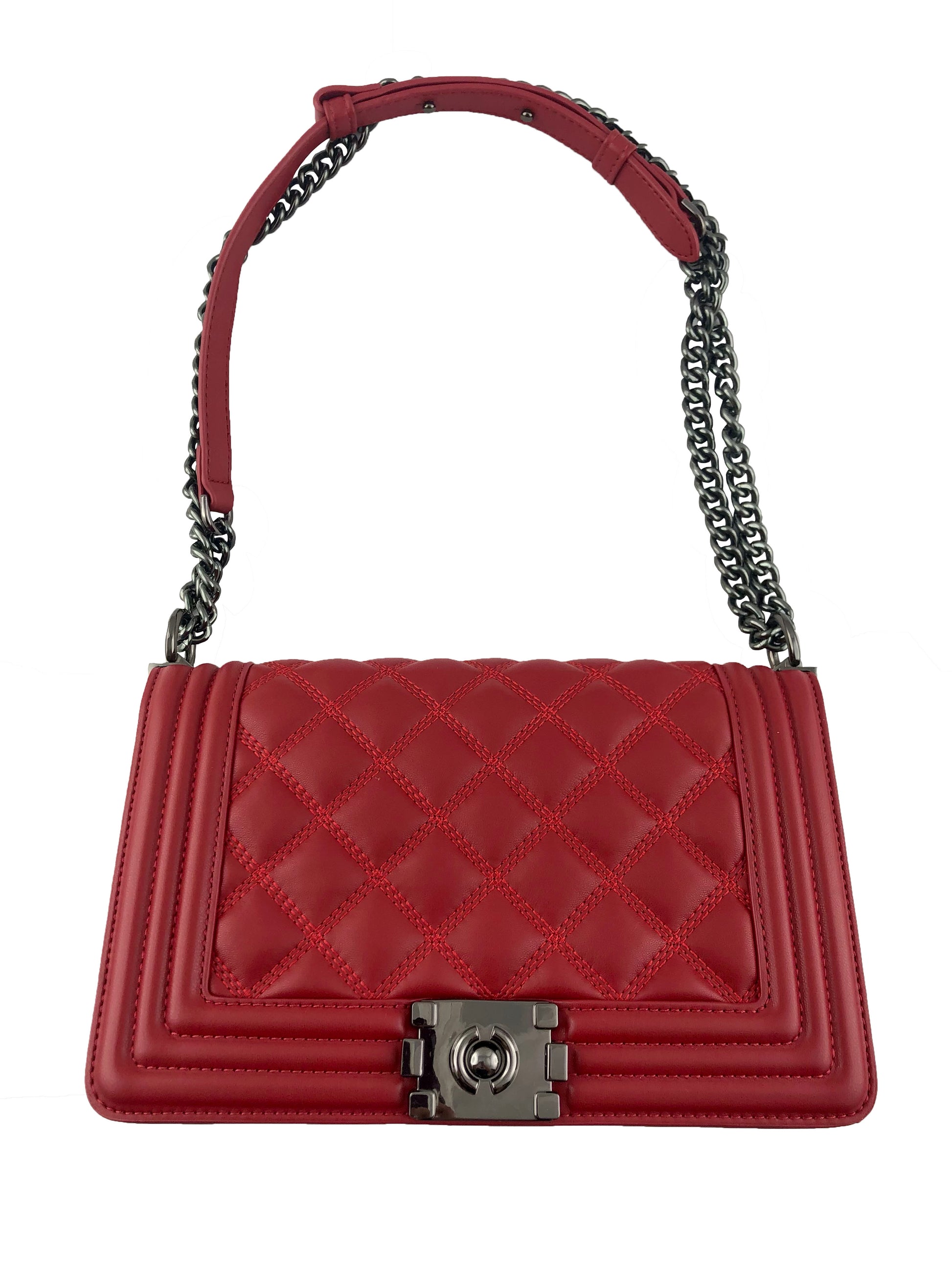 - Metal chain-linked shoulder strap with vegan leather detail