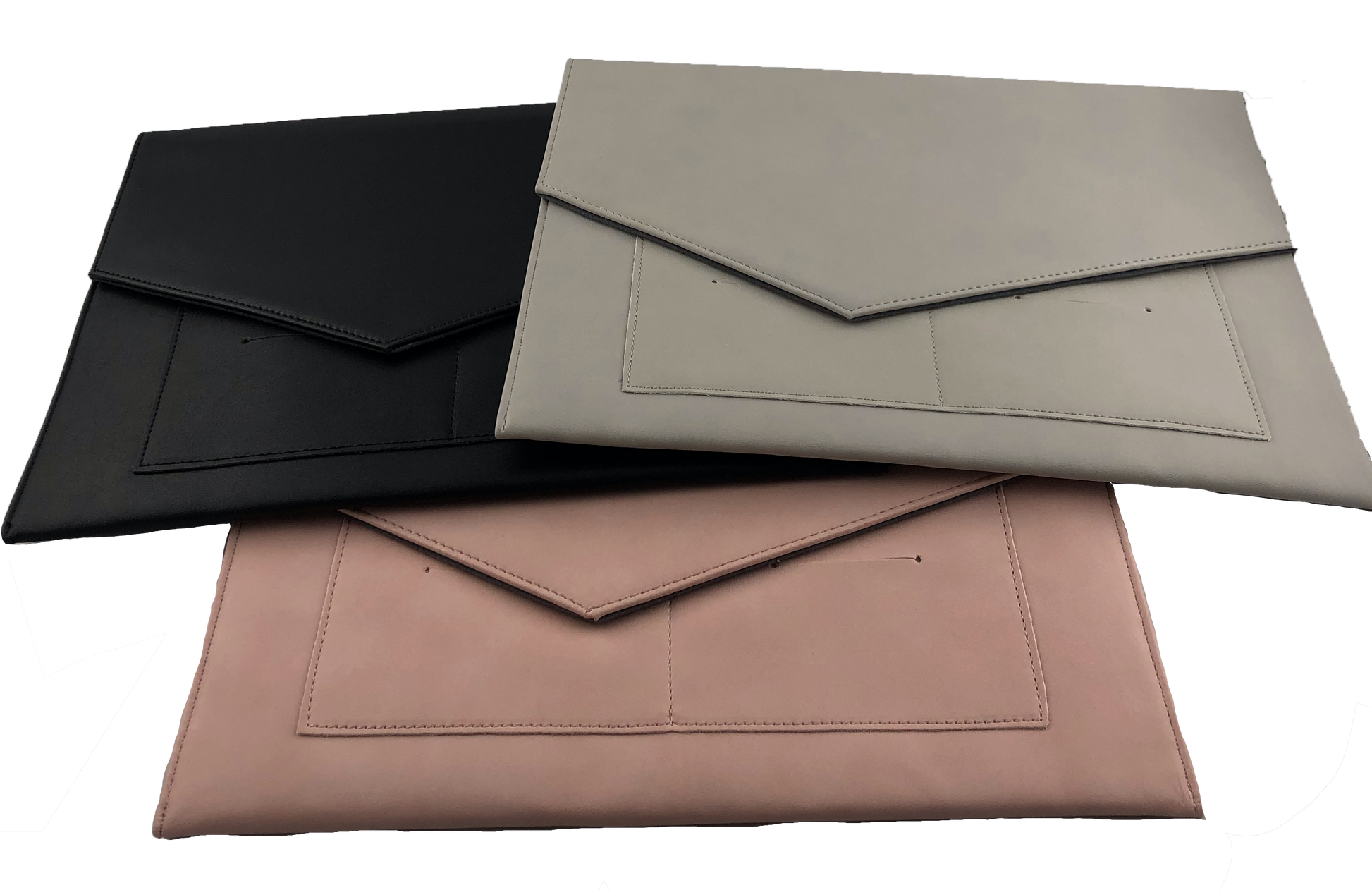 Upgrade your workwear with the elegant, vegan leather laptop wallet. Designed with an envelope style flap, the MALIBU laptop sleeve is perfect for your laptop and work documents and even has compartments for your credit cards. It can be carried as a laptop case or portfolio clutch adding a touch of style to your work week.- PUDU Vegan Leather Collection